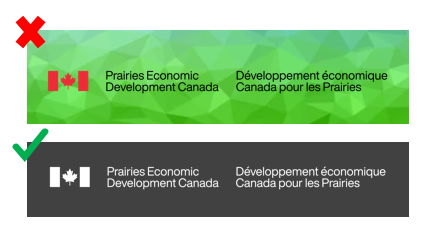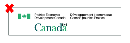 Le mot-symbole Canada doit être utilisé chaque fois que la signature du PFIM de PrairiesCan est utilisée; toutefois, il est acceptable d’utiliser une ligne de reconnaissance comportant uniquement le mot-symbole du gouvernement du Canada (c.-à-d. omettre la signature du PFIM PrairiesCan).