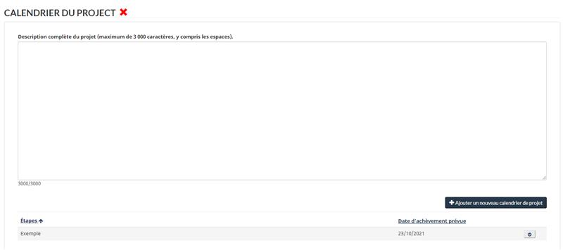 - Ensemble des activités et des mesures à coûts partagés qui seront réalisées entre la date proposée de début du projet et la date de fin proposée.