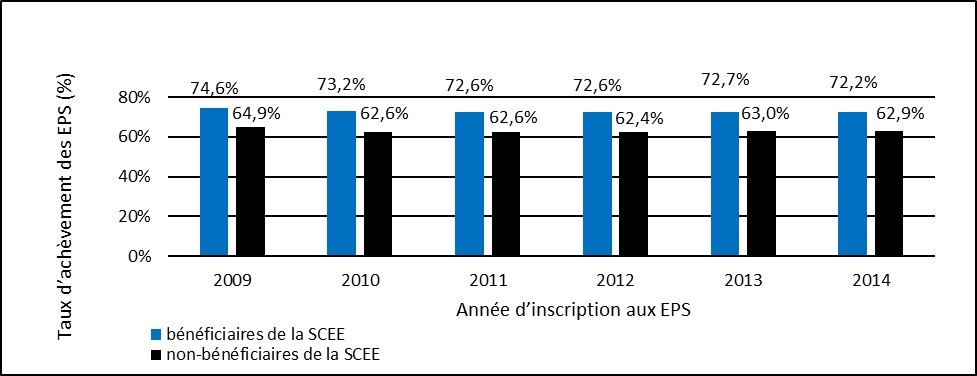 - Figure 9 : Taux d’achèvement des EPS des bénéficiaires et des non-bénéficiaires de la SCEE inscrits à des EPS, de 2009 à 2014