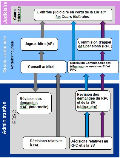 Dans le budget de 2012, le gouvernement fédéral a introduit des modifications législatives visant à « éliminer le double emploi dans les services des appels et des tribunaux en remplaçant l’actuel système de tribunaux administratifs visant les principaux programmes fédéraux de sécurité sociale par un organe décisionnel à guichet unique. » Il était prévu qu’un nouvel organe décisionnel à guichet unique rationaliserait et simplifierait les processus d’appel et améliorerait la prise de décisions. Grâce à ces efforts de modernisation, le nouveau système de tribunal, une fois parvenu à maturité, permettrait de réaliser des gains d’efficience et des réductions de coûts qui généreraient des économies annuelles de 25 millions de dollars. Dans le cadre du budget de 2012, le gouvernement a réitéré son engagement à préserver un processus d’appel indépendant, objectif et axé sur le client au chapitre des décisions administratives.