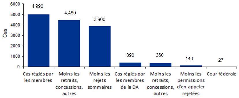 L’examen portait sur le mandat, la structure, les fonctions, le rendement et les interrelations du TSS. Les coûts et les résultats opérationnels du TSS pour les deux exercices financiers ayant pris fin le 31 mars 2017 ont été comparés aux coûts et aux résultats opérationnels des anciens tribunaux pour les deux exercices financiers ayant pris fin le 31 mars 2012Note de bas de page 4.