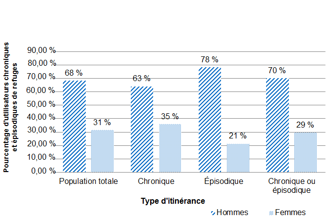 - Figure 1 : Pourcentage d'utilisateurs chroniques et épisodiques de refuges selon le sexe dans plus de 26 collectivités