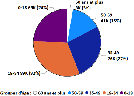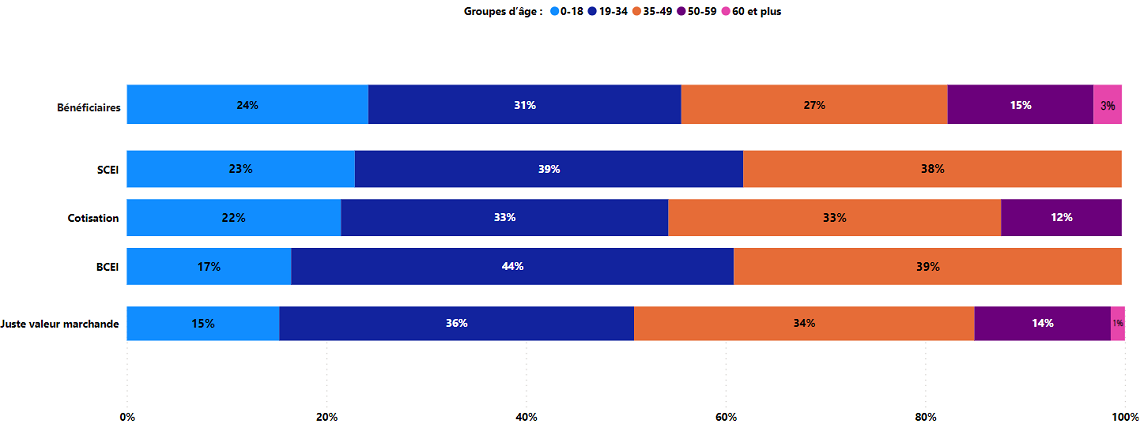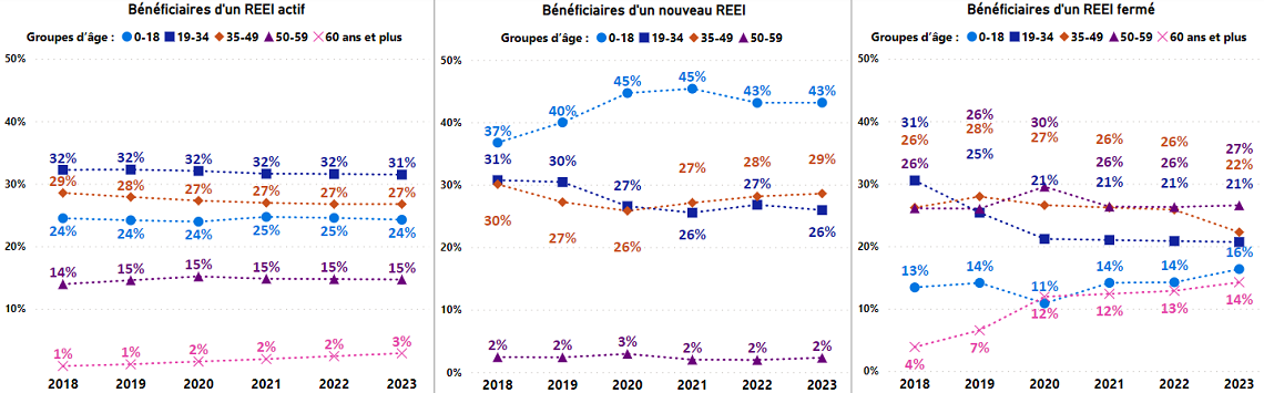 - Figure 3 : Nombre (en milliers) et pourcentage (%) de bénéficiaires du REEI selon le groupe d'âge, décembre 2023