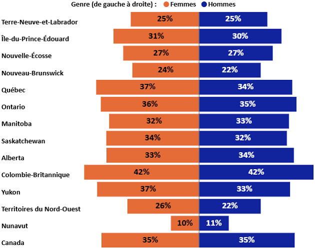 | 2022 | Femmes | 19 à 34 ans | 45,3 |