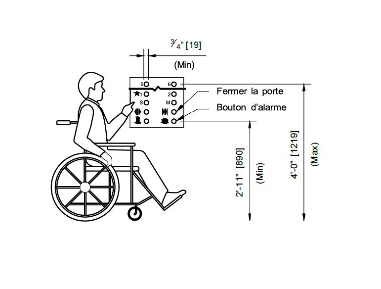 - Source : Figure 34 a), CSA/ASC B651 : 23 Conception accessible pour l'environnement bâti. © 2023 Association canadienne de normalisation.