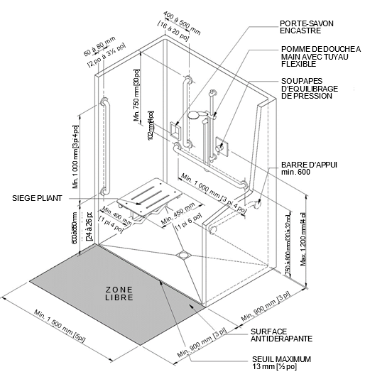 - Figure 7 : Cabine de douche accessible en fauteuil roulant - Plan général