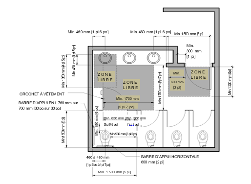 - Figure 5 : Toilettes dotées de plusieurs cabines, dont une cabine accessible – Plan général