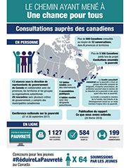 Des milliers de Canadiens, d'un océan à l'autre, nous ont fait comprendre ce que signifie vivre dans la pauvreté, nous ont expliqué la manière dont les programmes gouvernementaux pourraient les aider et nous ont indiqué les éléments à améliorer. Plus important encore, le gouvernement s'est tourné vers les personnes pauvres, afin que leurs voix et leurs points de vue soient entendus. Au bout du compte, tous ces Canadiens, y compris ceux qui portent le lourd fardeau de la pauvreté et ceux qui travaillent inlassablement pour renforcer nos communautés, nous ont décrit ce qu'ils voulaient voir dans une stratégie de réduction de la pauvreté.