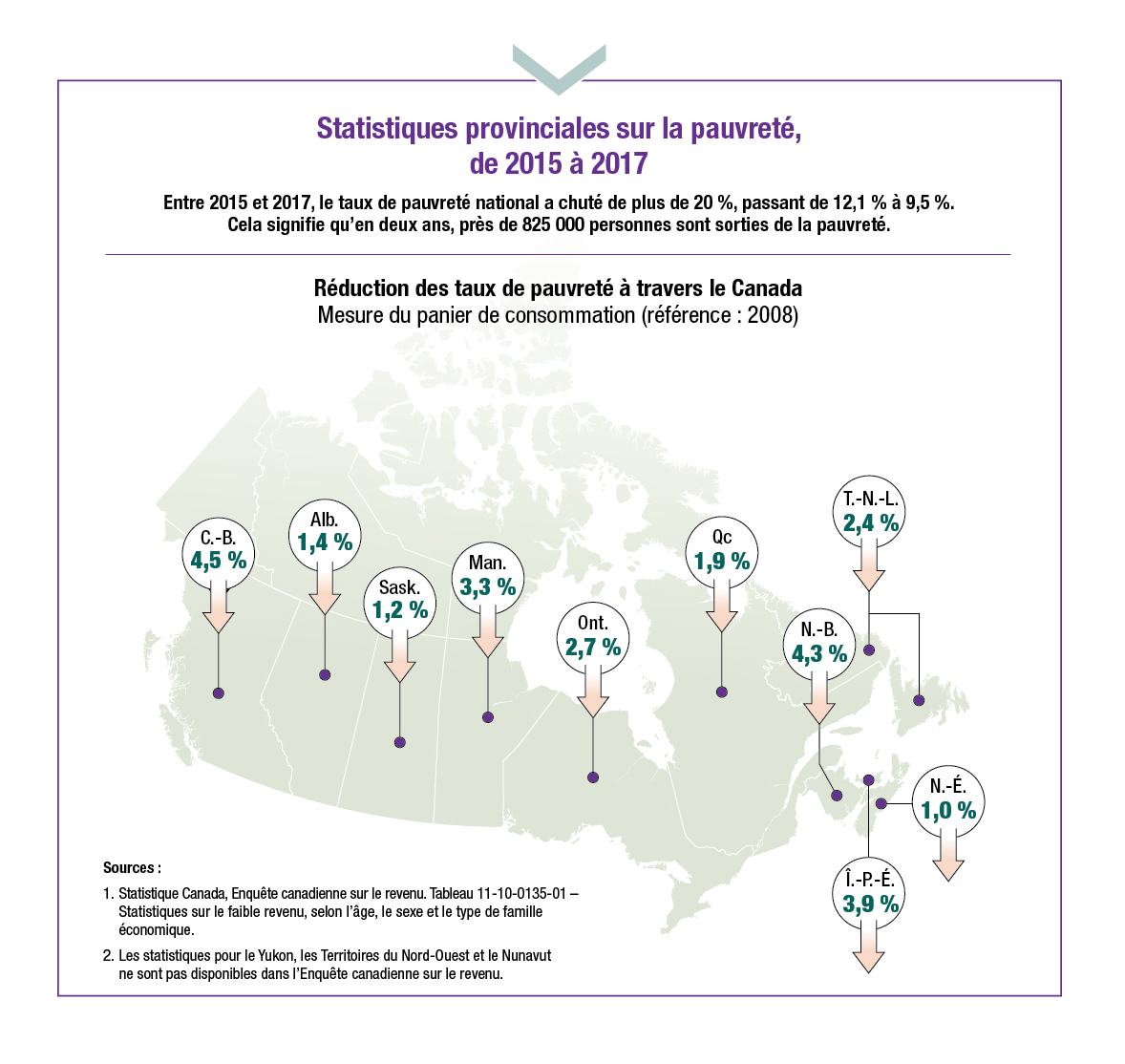 Toutes les provinces sont parvenues à réduire la pauvreté entre 2015 et 2017.