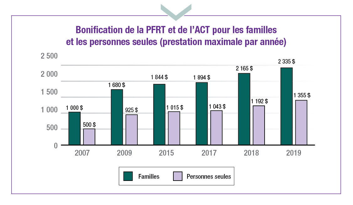 Grâce à l’Allocation canadienne pour les travailleurs, elle recevra près de 1 378 $ en 2019, soit 717 $ de plus que ce qu’elle aurait reçu en 2018 avec la Prestation fiscale pour le revenu de travail.