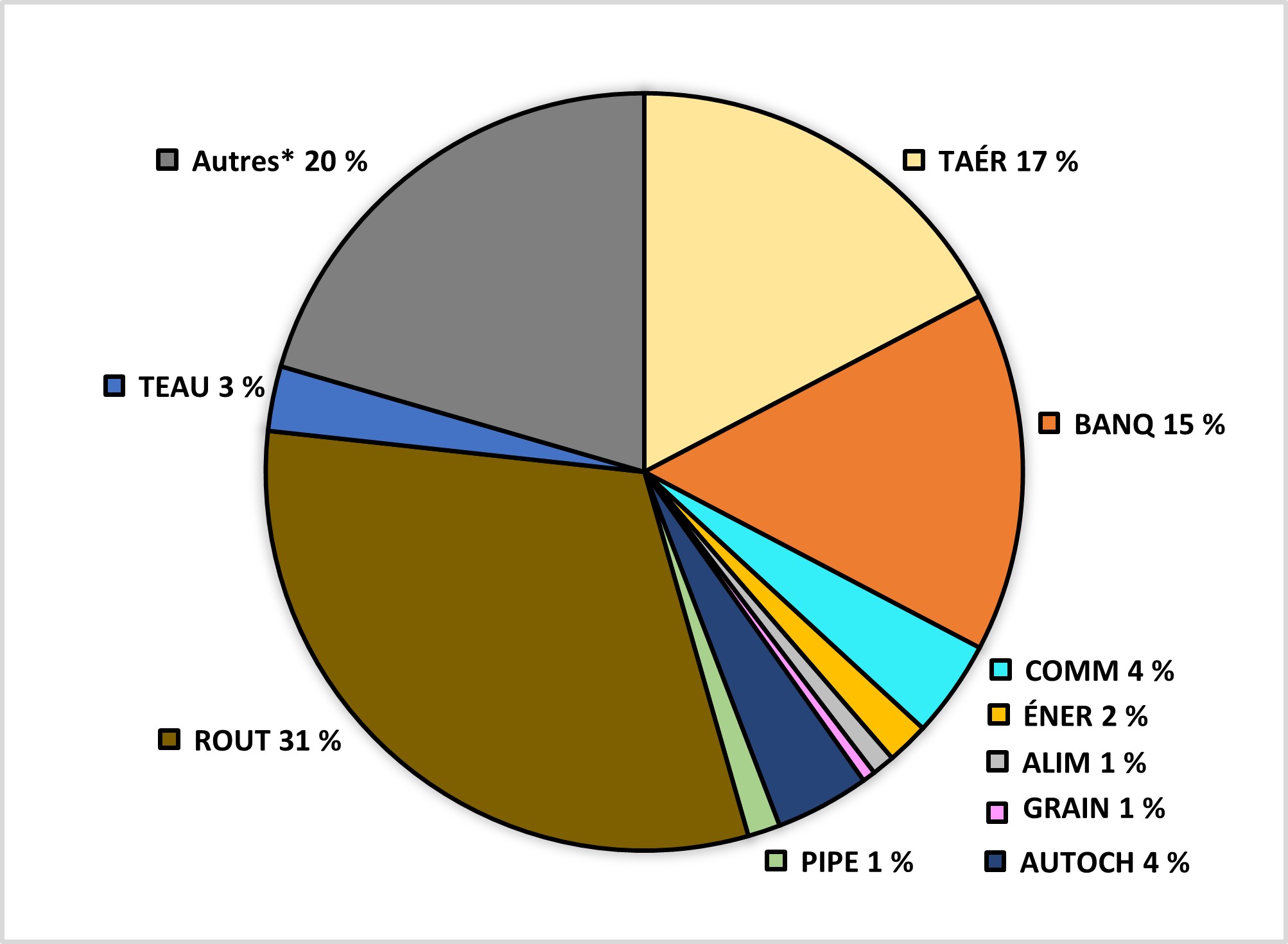- * La catégorie Autres secteurs comprend ceux ayant déclaré moins de 50 incidents : 1) Aliments du bétail, farine et semences, 2) Transport par pipeline, 3) Manutention des grains et élévateurs à grains, 4) Infrastructures interprovinciales (ponts, tunnels, canaux, chaussées)