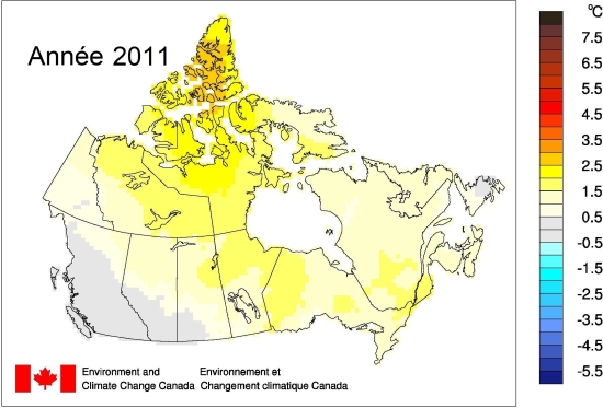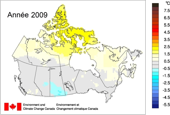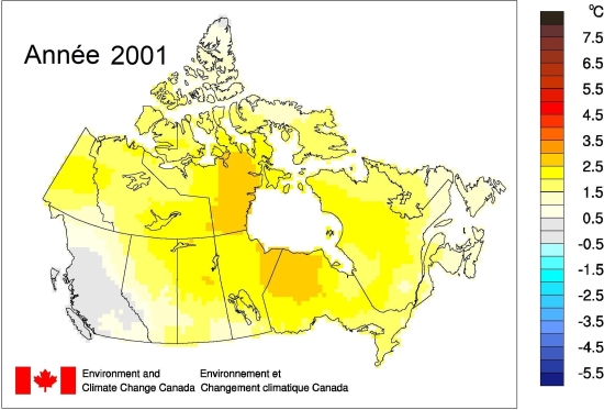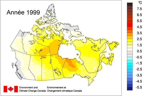 Écarts de la température par rapport à la moyenne de 1961 à 1990