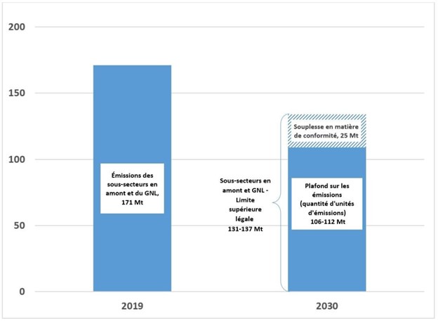 Limite supérieure légale du sous-secteur du GNL et du sous-secteur en amont, de 131 à 137 Mt |