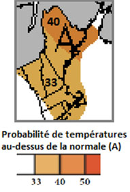 Les probabilités climatologiques sont décrites par des graphiques linéaires de la couleur correspondante pour les trois éléments.