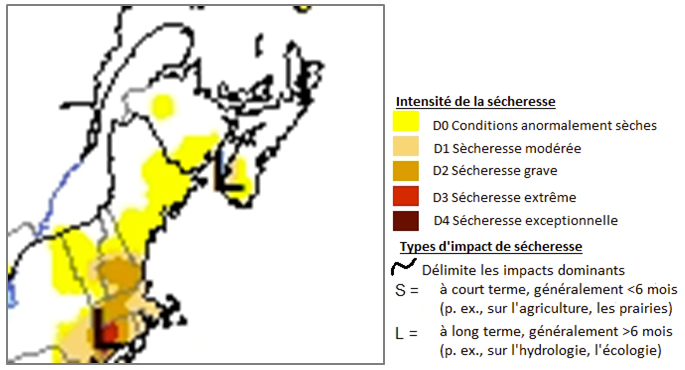 La sécheresse a persisté, mais la situation s’est améliorée lentement au cours de l’hiver en Nouvelle-Angleterre et dans certains secteurs des Maritimes. Au début de janvier, la sécheresse extrême s’était atténuée dans l’est du Massachusetts et au New Hampshire. À la fin de janvier, la sécheresse grave s’était atténuée dans l’est du Massachusetts et dans le Maine, tandis que la sécheresse modérée s’était atténuée au Nouveau-Brunswick et sur une grande partie de la Nouvelle-Écosse. Les conditions ont continué à s’améliorer dans le Maine en février. Pour plus de détails, voir la section sur les impacts.