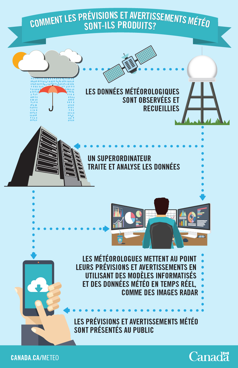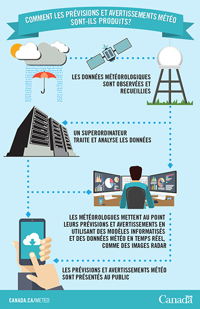 Infographique expliquant comment les prévisions et les avertissements météo sont produits.