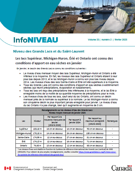 InfoNIVEAU : Niveau des Grands Lacs et du Saint-Laurent, février 2025