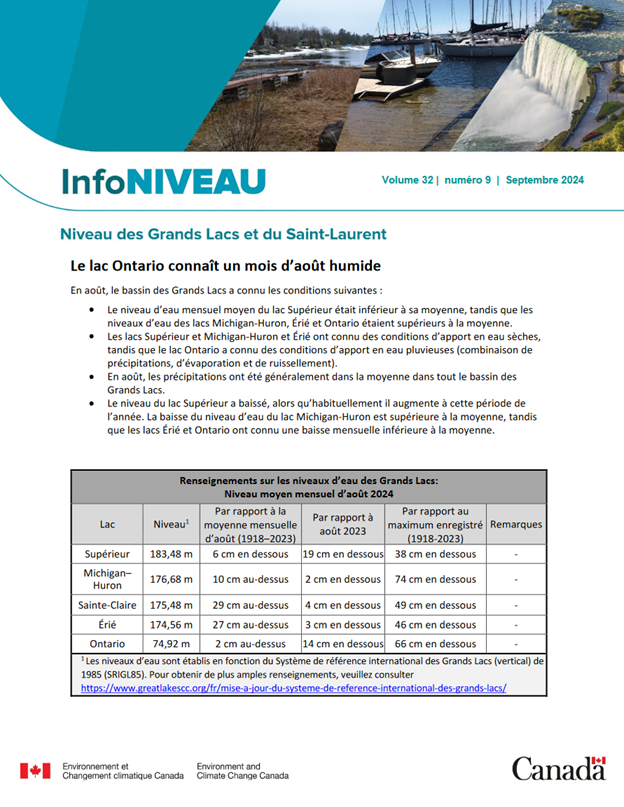 InfoNIVEAU : Niveau des Grands Lacs et du Saint-Laurent, septembre 2024