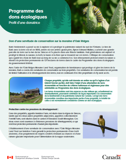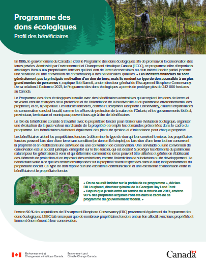 Programme des dons écologiques pour l’Ontario – Profils de donateurs et de bénéficiaires