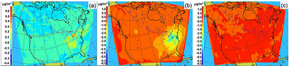 Au Canada, des chercheurs d’Environnement Canada ont couplé avec succès le modèle de transport chimique, AURAMS (système régional unifié de modélisation de la qualité de l’air), avec le modèle climatique régional canadien (MCRC4.2) pour modéliser les effets des changements climatiques sur les concentrations d’ozone, les matières particulaires de 2,5 microns (MP2,5) et ses précurseurs à l’échelle de l’Amérique du Nord. Les résultats de ces efforts de modélisation sont abordés plus loin dans ce chapitre.
