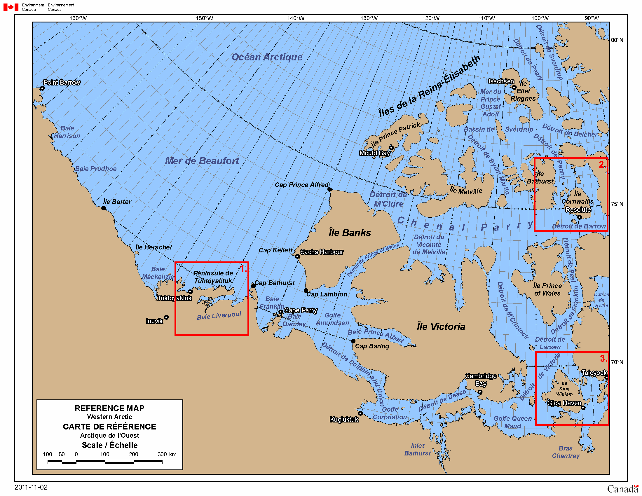 Carte de l'ouest de l'Arctique avec toponymes
