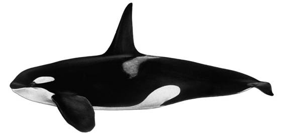 Épaulard -- Illustration de A. Denbigh, reproduite avec la permission de Pêches et Océans Canada.