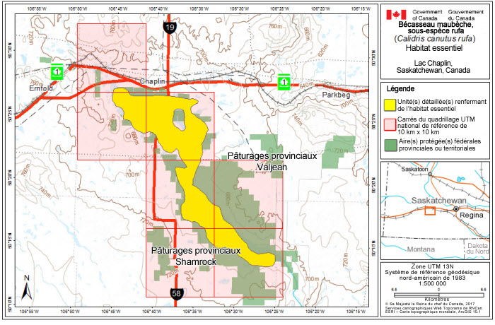 Dans le cas de l’habitat essentiel désigné pour les espèces terrestres, y compris les oiseaux migrateurs, la LEP exige que l’habitat essentiel désigné dans une zone protégée par le gouvernement fédéralNote1de bas de page soit décrit dans la Gazette du Canada dans un délai de 90 jours après l’ajout dans le Registre public du programme de rétablissement ou du plan d’action qui a désigné l’habitat essentiel. L’interdiction de détruire l’habitat essentiel aux termes du paragraphe 58(1) s’appliquera 90 jours après la publication de la description de l’habitat essentiel dans la Gazette du Canada.