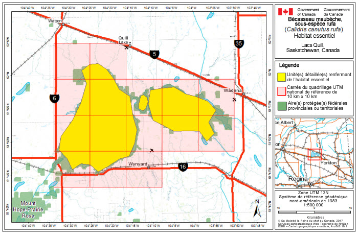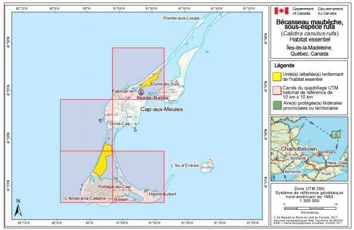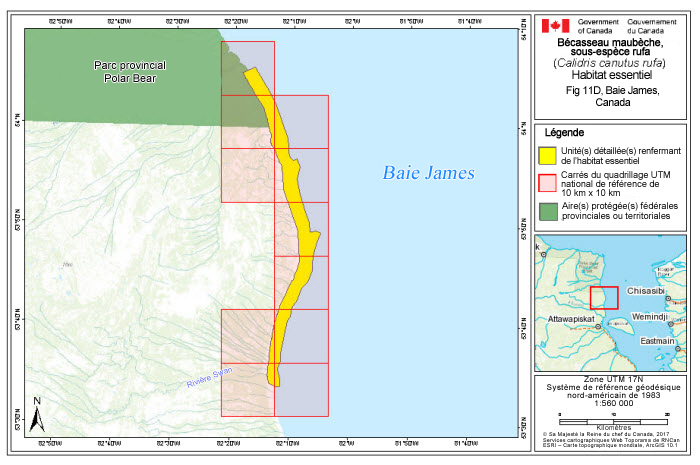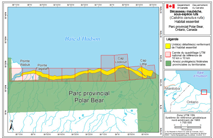 Aux termes de la LEP, la désignation et la protection de l'habitat essentiel s'appliquent uniquement aux espèces en voie de disparition et aux espèces menacées. L'habitat essentiel à la survie et au rétablissement du rufa et du roselaari est partiellement désigné à la section 7.1. Puisque l'habitat essentiel ne s'applique pas aux espèces préoccupantes, il n'est pas désigné dans le cas de l'islandica dans le présent document. Un calendrier des études a été élaboré pour obtenir l'information nécessaire à la désignation complète de l'habitat essentiel en vue de l'atteinte des objectifs en matière de population et de répartition.