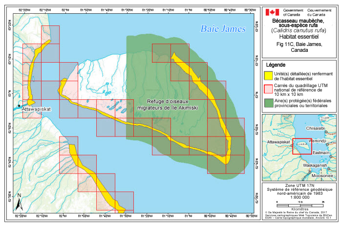 Environnement et Changement climatique Canada. 2017. Programme de rétablissement et Plan de gestion du Bécasseau maubèche (Calidris canutus) au Canada, Série de Programmes de rétablissement de la Loi sur les espèces en péril, Environnement et Changement climatique Canada, Ottawa, ix + 71 p.