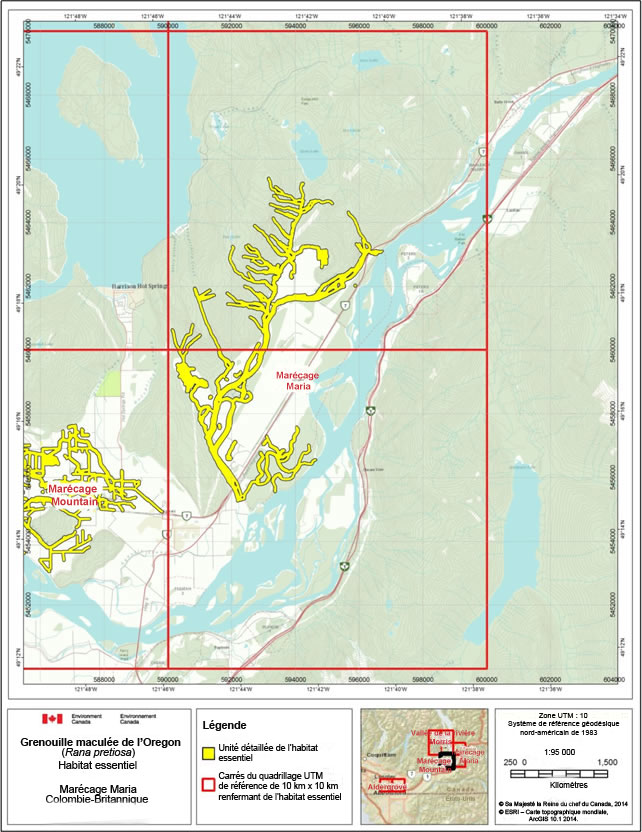 Annexe 1. Cartes de l'habitat essentiel de la grenouille maculée de l'oregon au canada