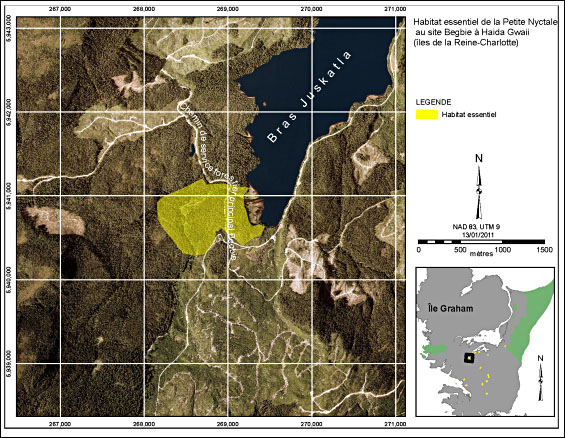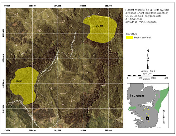 - Figure 4. Habitat essentiel de la Petite Nyctale au site Québec (QC) 11 kilomètres (km) Nord à Haida Gwaii (îles de la Reine-Charlotte).