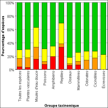 | Classification nationale | Tous espèces | Plantes vasculaires | Moules d'eau douce | Écrevisses | Odonates | Cicindèles | Poissons | Amphibiens | Reptiles | Oiseaux | Mammifères |