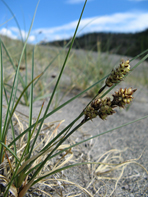 Le carex des sables (Carex sabulosa) est une plante vivace qui pousse dans le sol sableux meuble du système dunaire balayé par le vent dans le sud-ouest du Yukon. Le carex a de longues racines horizontales appelées rhizomes qui l'aident à s'enraciner dans le sable et à stabiliser la dune dans laquelle il vit.