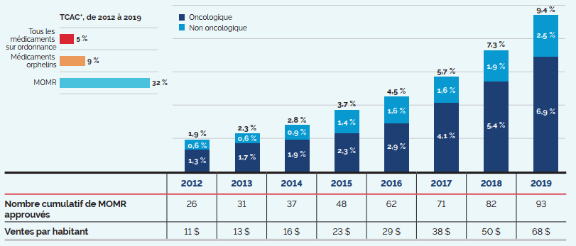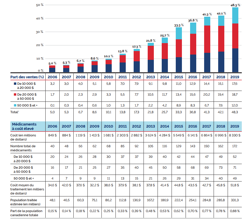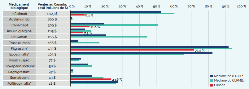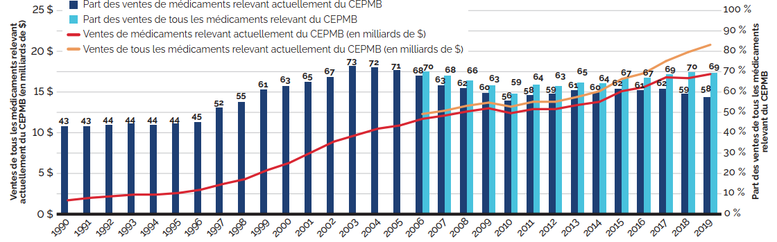 - Les médicaments brevetés représentaient environ 60 % du total des ventes de médicaments au Canada.