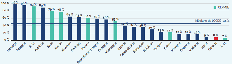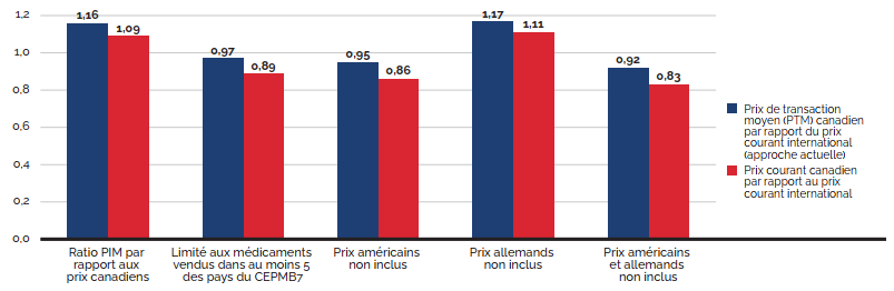 - Les prix au Canada se situaient au quatrième rang des prix les plus élevés parmi les sept pays de comparaison du CEPMB, étant inférieurs aux prix en Suisse, en Allemagne et aux États-Unis.