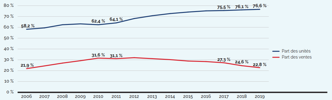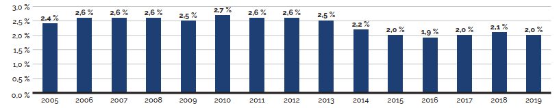 - 3,9 % pour tous les brevetés, une diminution légère par rapport à 4,0 % en 2018.