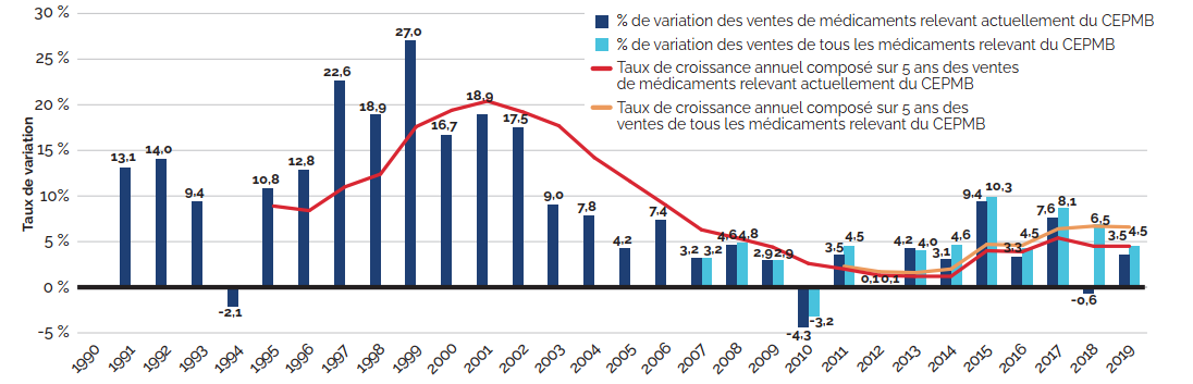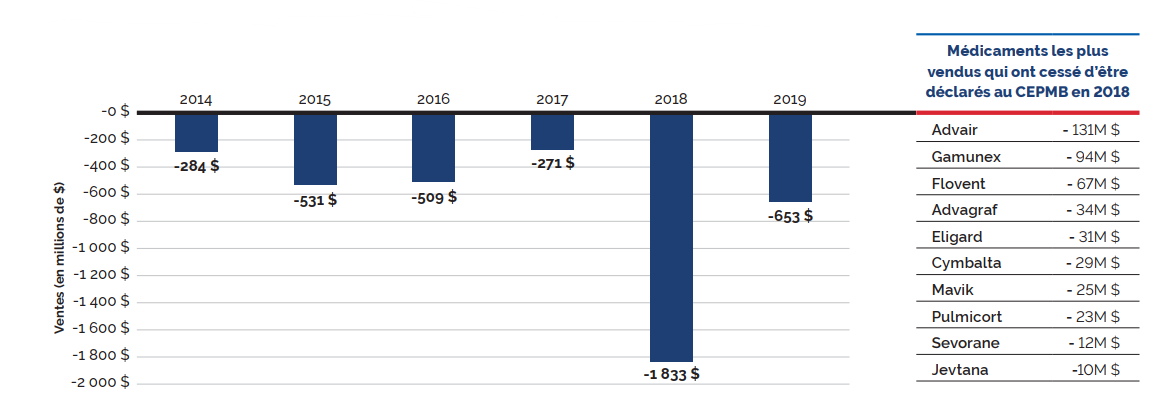 1 364 Médicaments brevetés ont fait l’objet d’un rapport au CEMPB en 2019.