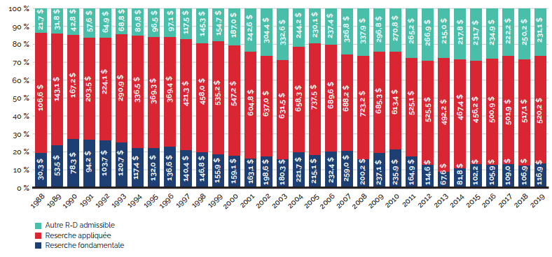 - Les brevetés ont fait rapport de dépenses de R-D totalisant 893,2 millions de dollars, soit une augmentation de 0,1 % par rapport à 2018.