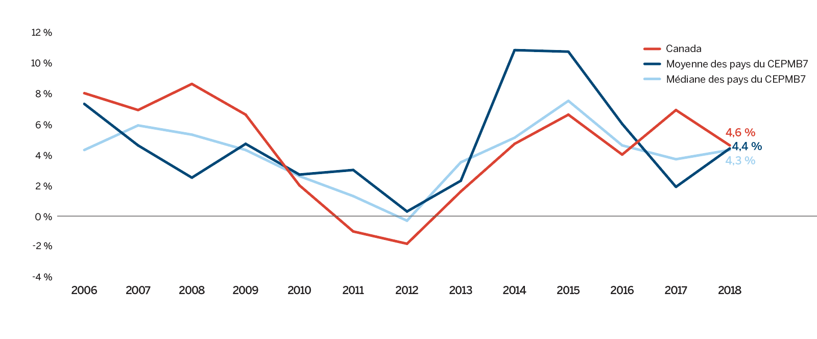 - 4,3 % pour tous les brevetés membres de Médicaments novateurs Canada, une diminution par rapport à 4,6 % en 2017.