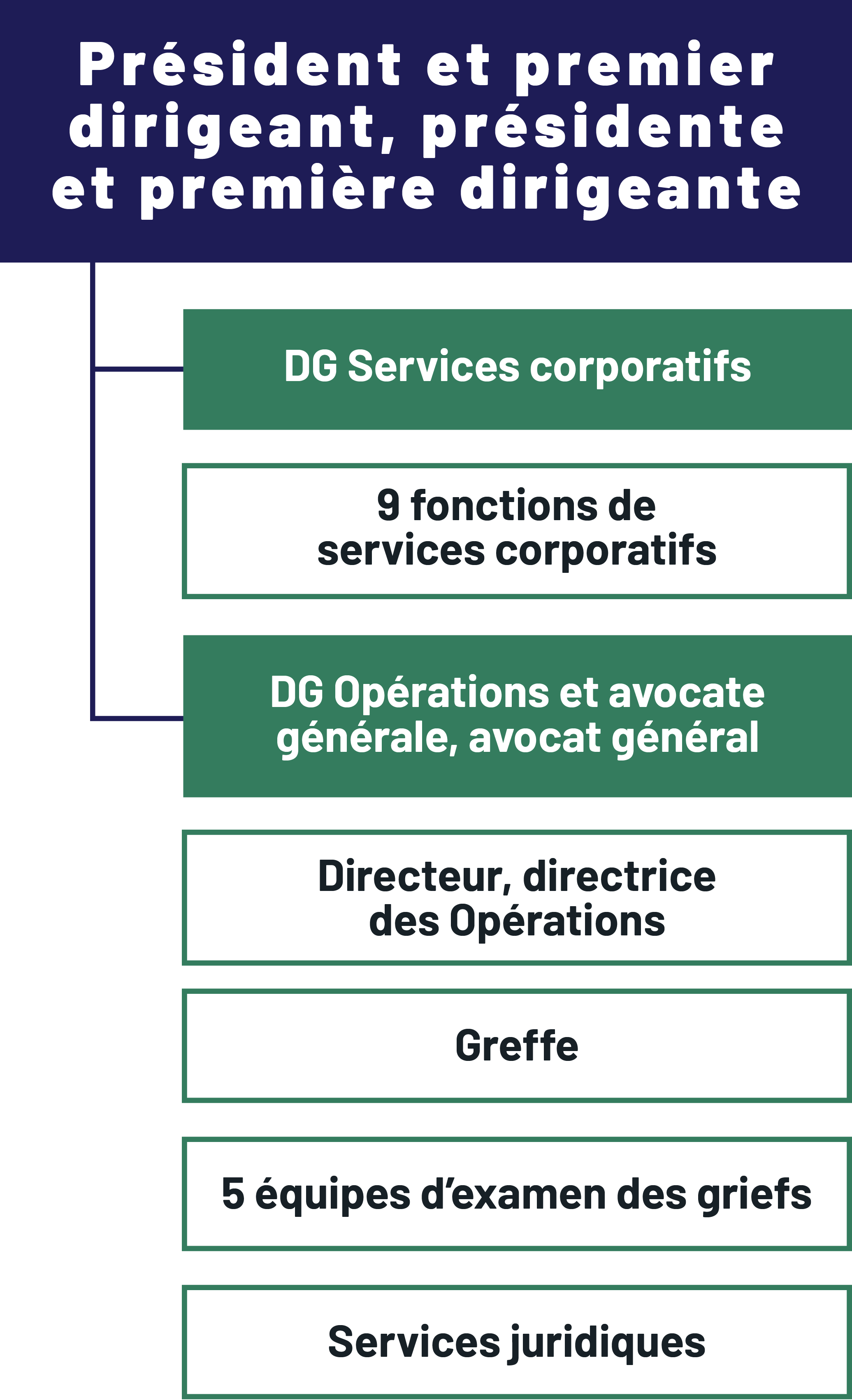 Les membres du Comité bénéficient du soutien du greffe, des Services juridiques, des cheffes et chefs d’équipe ainsi que des agents et agentes des griefs qui leur fournissent des analyses et conseils sur une vaste gamme de sujets. Par ailleurs, l’équipe des Services corporatifs du Comité rend les services suivants : gestion et surveillance, communications, gestion des ressources humaines, gestion financière, gestion de l’information, gestion immobilière, gestion du matériel et gestion de l’approvisionnement.