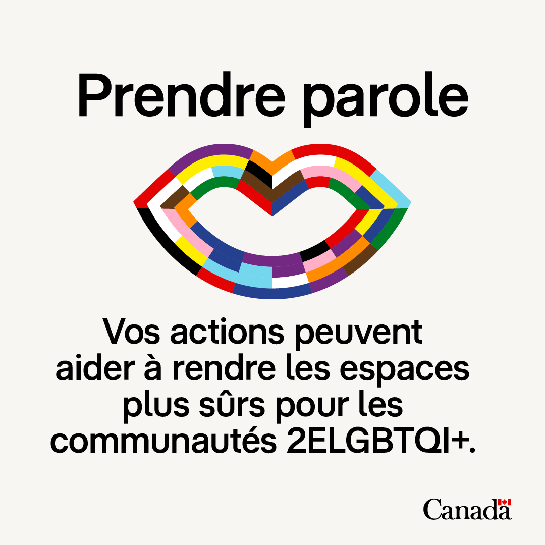 Beaucoup de personnes veulent soutenir les communautés 2ELGBTQI+, mais ne savent pas par où commencer. Découvrez comment prendre parole à canada.ca/unite