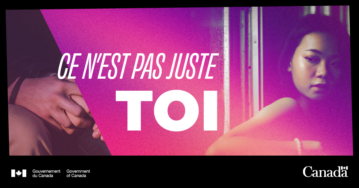 La violence fondée sur le sexe, ce n’est pas juste de la violence physique. Si tu subis de la #VFS émotionnelle, sexuelle ou physique, ou de l'exploitation financière, de l’aide et du soutien sont disponibles. Trouve des ressources : Canada.ca/CeNestPasJuste