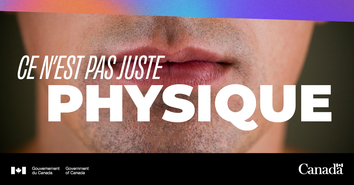 Un gros plan de la bouche d’un homme. Texte de l’image : « Ce n'est pas juste physique ».