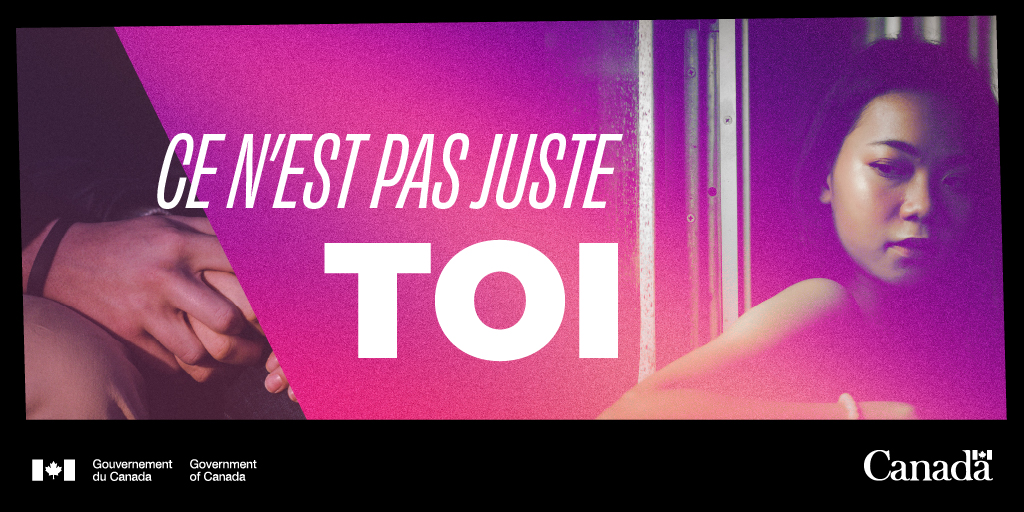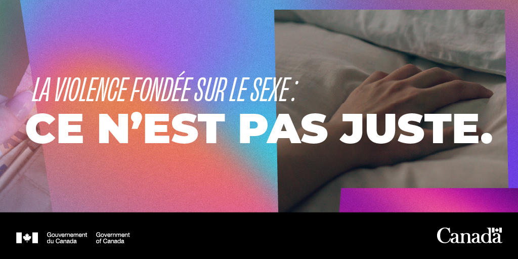 La violence fondée sur le sexe, ce n’est pas juste de la violence physique. Si tu subis de la #VFS émotionnelle, financière, sexuelle ou physique, de l’aide et du soutien sont disponibles. Trouve des ressources : Canada.ca/CeNestPasJuste