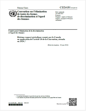 Dans le cadre des engagements internationaux du Canada, le gouvernement rend compte périodiquement de sa mise en œuvre de la Convention des Nations Unies sur l’élimination de toutes les formes de discrimination à l’égard des femmes (CEDEF).