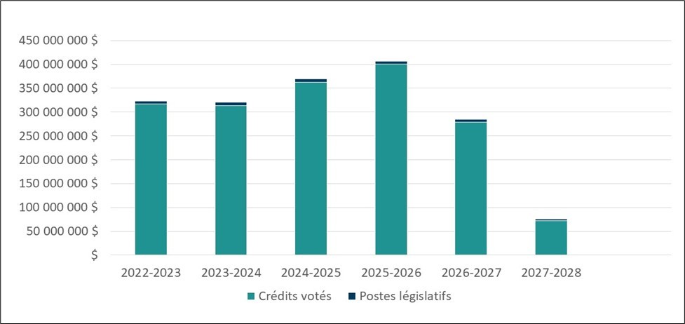Les ETP prévus pour 2026-2027, tels qu’ils figurent dans le Plan ministériel 2025-2026, sont en diminution en raison de la fin planifiée des fonds temporaires. Cette fin du financement temporaire entraîne une réduction de 130 ETP en 2026-2027 par rapport à 2025-2026, puis une autre réduction de 60 ETP d’ici 2027-2028.