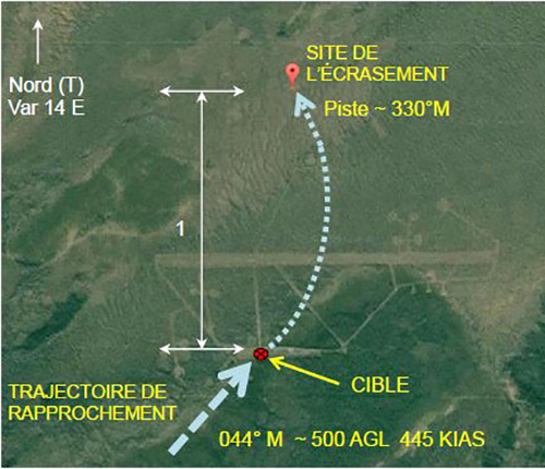 Figure 2 : Vue aérienne de la zone des cibles et trajectoire de vol finale.