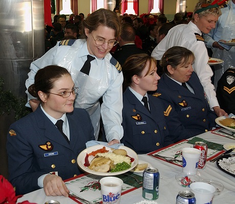 Pour renforcer le moral du personnel, on offre traditionnellement un souper de Noël spécial pendant la période des Fêtes dans les escadres de la Force aérienne au Canada. Les officiers servent aux militaires du rang un festin des Fêtes complet, et le plus jeune membre de l’escadre en devient le commandant pour la journée.