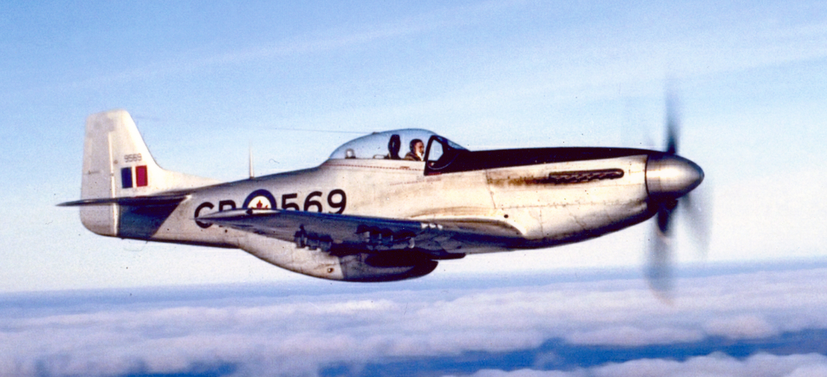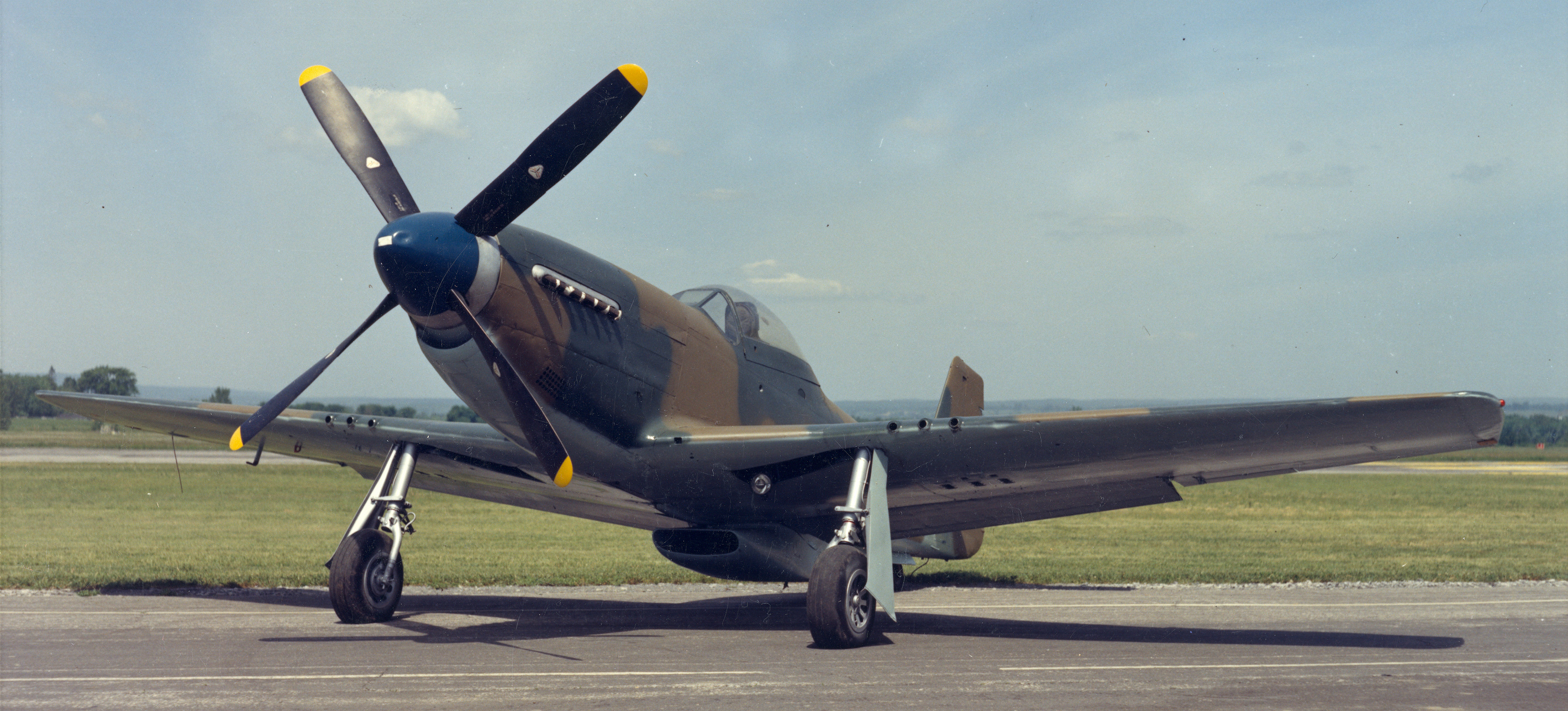 Le Mustang de North American a été mis en vol en 1940 et est devenu un des meilleurs chasseurs longue portée de la Seconde Guerre mondiale. Les premières versions, dotées d’un moteur Allison, n’offraient pas de bonnes performances à haute altitude et étaient donc utilisées, autant par la Royal Air Force que l’ARC, pour la reconnaissance à basse altitude et les attaques au sol. À la suite de modifications à la conception, l’avion a été doté d’un moteur Rolls-Royce Merlin et d’une nouvelle cellule. Cette combinaison, appelée Mark IV par le RAF et l’ARC, s’est avérée exceptionnelle. Trois escadrons de l’ARC (no 400, 414 et 430) ont continué à utiliser le premier modèle du Mustang pour la reconnaissance et les escadrons nos 441 et 442 sont passés à la version Mk IV en 1945 pour l’escorte à longue portée. Après la guerre, l’ARC a fait l’acquisition de 88 autres Mustang IV pour ses escadrons réguliers et auxiliaires. Les avions sont demeurés en service jusqu’en 1961.
