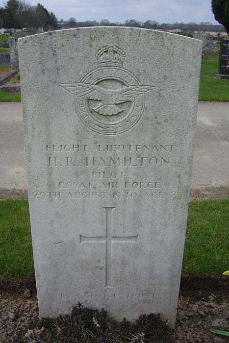 Deux semaines après le décès d’Harry Raymond Hamilton, un service commémoratif a eu lieu à l’église baptiste d’Oak Point. Il a été enterré avec tous les honneurs militaires au nouveau cimetière Folkstone, dans le comté de Kent, en Angleterre. Son père a reçu les condoléances de nombreuses personnes, y compris du roi George VI et du commandant d’aviation Townsend, qui ont écrit que Hamilton était « décédé en héros ».